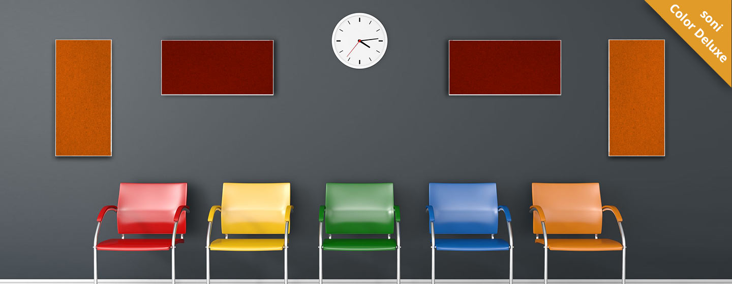Akustik olarak optimize edilmiş bekleme alanları ve giriş salonları, kesintisiz iletişim ve gerekli takdir yetkisini sağlar. Kurulumu kolay ses emicilerimiz ile odalarınızı ayrı ayrı tasarlayabilir ve böylelikle müşterileriniz ve hastalarınız için sessiz ve hoş bir ortam sağlayabilirsiniz. Ek olarak, görsel olarak çekici akustik ürünler her odaya değer katar ve ayrıca çok az çabayla sonradan donatılabilir.