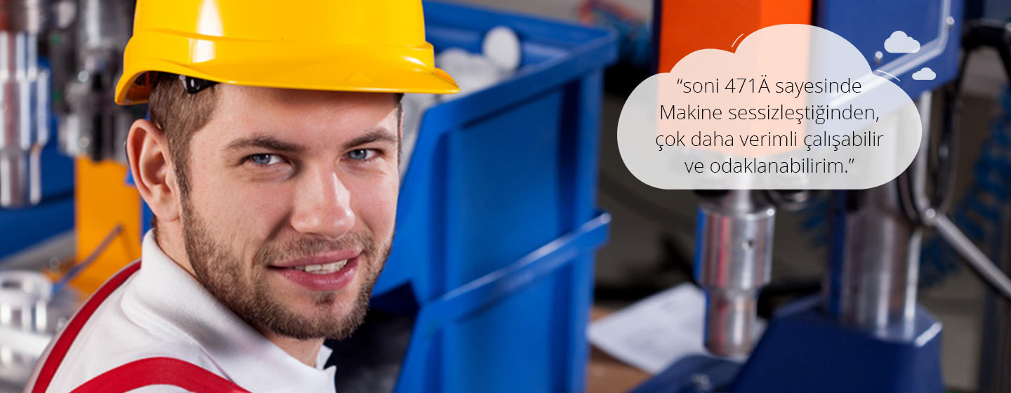 İster büyük ister küçük olsun, makineler genellikle gürültü üretir. Bu düzeyde gürültü çok rahatsız edici olabilir. Bu nedenle, bir makinenin gürültü emisyonlarını azaltmak için, ideal olarak gürültünün kaynağından yaklaşık 30 cm uzakta olmak üzere, cihazı yerleştirmenizi öneririz. Muhafaza (ahşap, plastik veya sac metalden yapılmış) iç tarafta ses geçirmez bir malzeme ile kaplanmalıdır. Bunun için soni RESIST, soni COMPOSITE ve soni WAVE ürünlerimizi tavsiye ediyoruz.