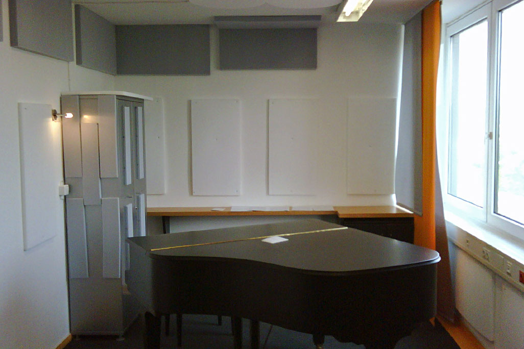 Mümkün olan en iyi sonucu elde etmek için, bir "oda içinde oda çözümü" öneriyoruz. Burada, ses yalıtımı için odaya başka bir duvar konstrüksiyonu inşa edilmiş ve bu, özellikle etkili bir ses emici malzeme ile kaplanmıştır. Rahatsız edilmeyen ve ideal bir kayıt ortamı için dışarıya ve stüdyoya ses iletimini azaltır. Biz bu durumlar için soni COMPOSITE ürünümüzü tavsiye ediyoruz, hem ses bariyeri hem akustik ses emici sünger bir arada olduğundan çok etkili bir çözüm olacaktır, tavsiye ederiz.
